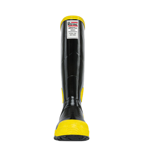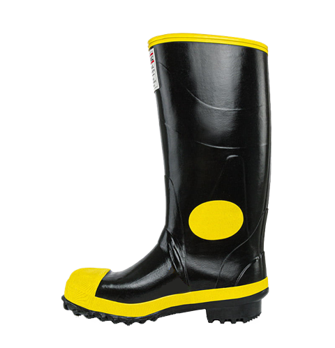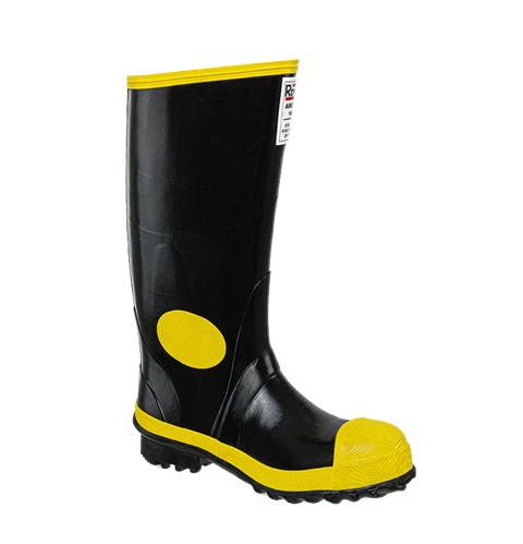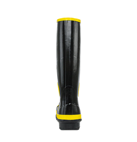 Botas de construcción fabricadas en caucho y ensambladas manualmente pieza por pieza. Son ideales para sectores de hidrocarburos, construcción o minería. Cuentan con proceso de vulcanizado en autoclave. Su suela es resistente a la abrasión y tiene un labrado profundo, que proporciona mejor agarre en las zonas de trabajo y facilita la remoción de residuos. Cuentan con puntera de acero que cumple con la resistencia al impacto de 200J y resiste una fuerza de compresión de 15 kN según la norma EN 12568. Forro interno 100 % algodón, plantilla confort fabricada en poliuretano (PU) y forrada en poliéster. Caña negra con suela negra y distintivos amarillos.