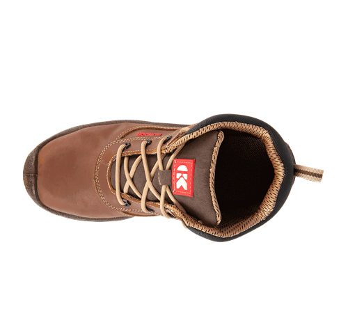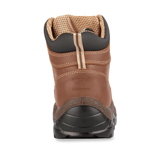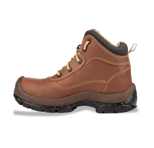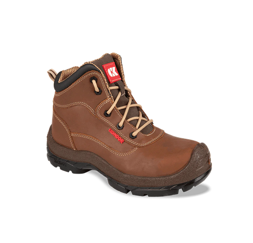Botas Kondor con capelladas en cuero, puntera en policarbonato y suela en poliuretano, tridensidad confortable y liviana.