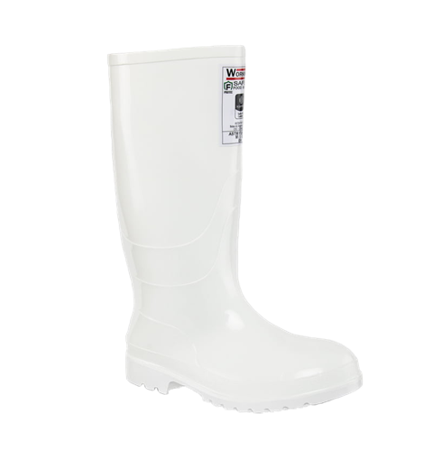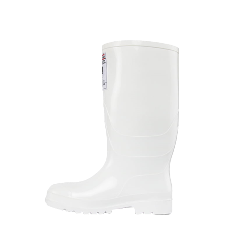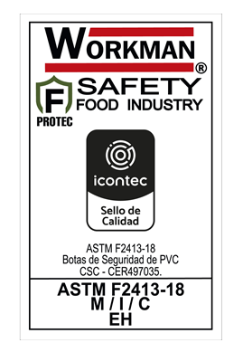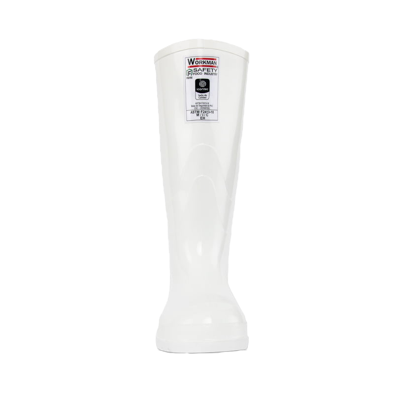 Botas para la industria alimentaria fabricadas en PVC, las únicas del mercado con Protec F, un compuesto producido exclusivamente por Croydon que otorga resistencia y protección frente a los ácidos grasos propios de los alimentos. Son botas de seguridad certificadas por Icontec con sello de producto de calidad bajo los requerimientos de la norma ASTM F2413-18. Es de caña blanca con suela blanca. Tiene un forro interno en 100 % poliéster tejido rizo y trae un puente estabilizador para el pie, que ofrece mayor estabilidad al caminar. Tiene una plantilla confort de poliuretano (PU) con forro en poliéster. Además, traer una puntera en acero que cumple con la resistencia al impacto de 101,7J. Resiste fuerza de compresión de 11.121N o 2.500lbf según la norma ASTM F2413-18.