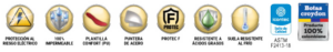 PUNTERA: Fabricada en acero, bota certificada, cumple con la resistencia al impacto de 101.7 J. y resiste una fuerza de compresión de 11.121 N. o 2.500lbf según la norma ASTM F2413-18.